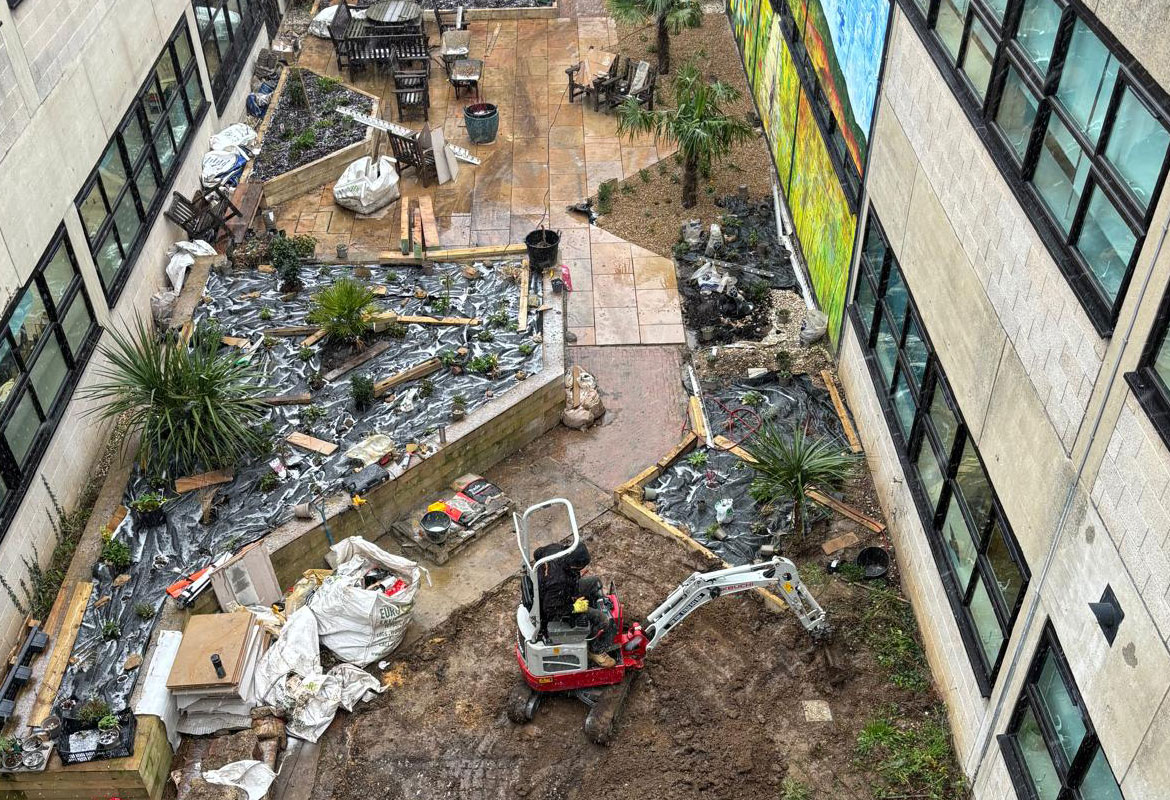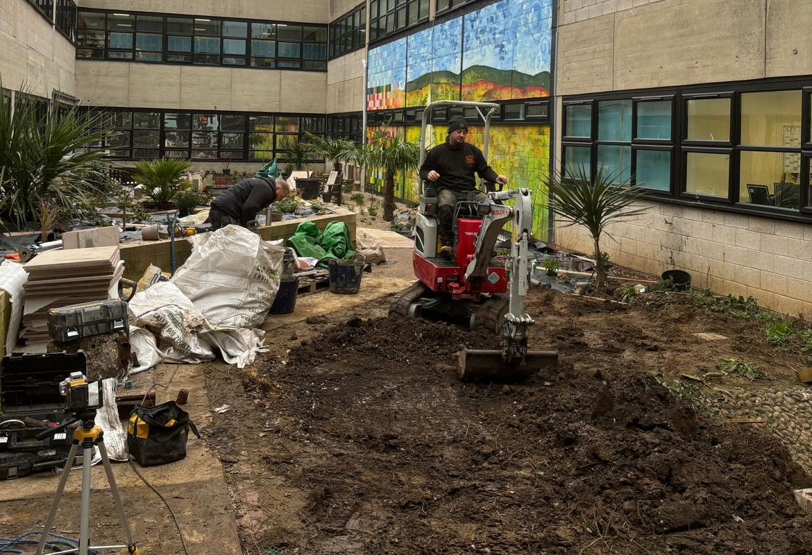 The project was carried out within a live hospital environment with a busy A&E department operating at all times. A key challenge was ensuring minimal disruption to patients, staff, and emergency services. To achieve this, works were carefully planned and completed out of hours where required. Access to the garden area was restricted, with all materials, diggers, dumpers, and building equipment needing to be safely transported through the hospital. Strict safety controls and coordination were essential throughout the project.