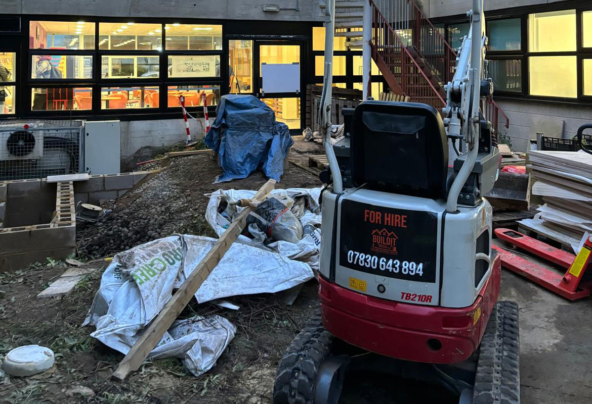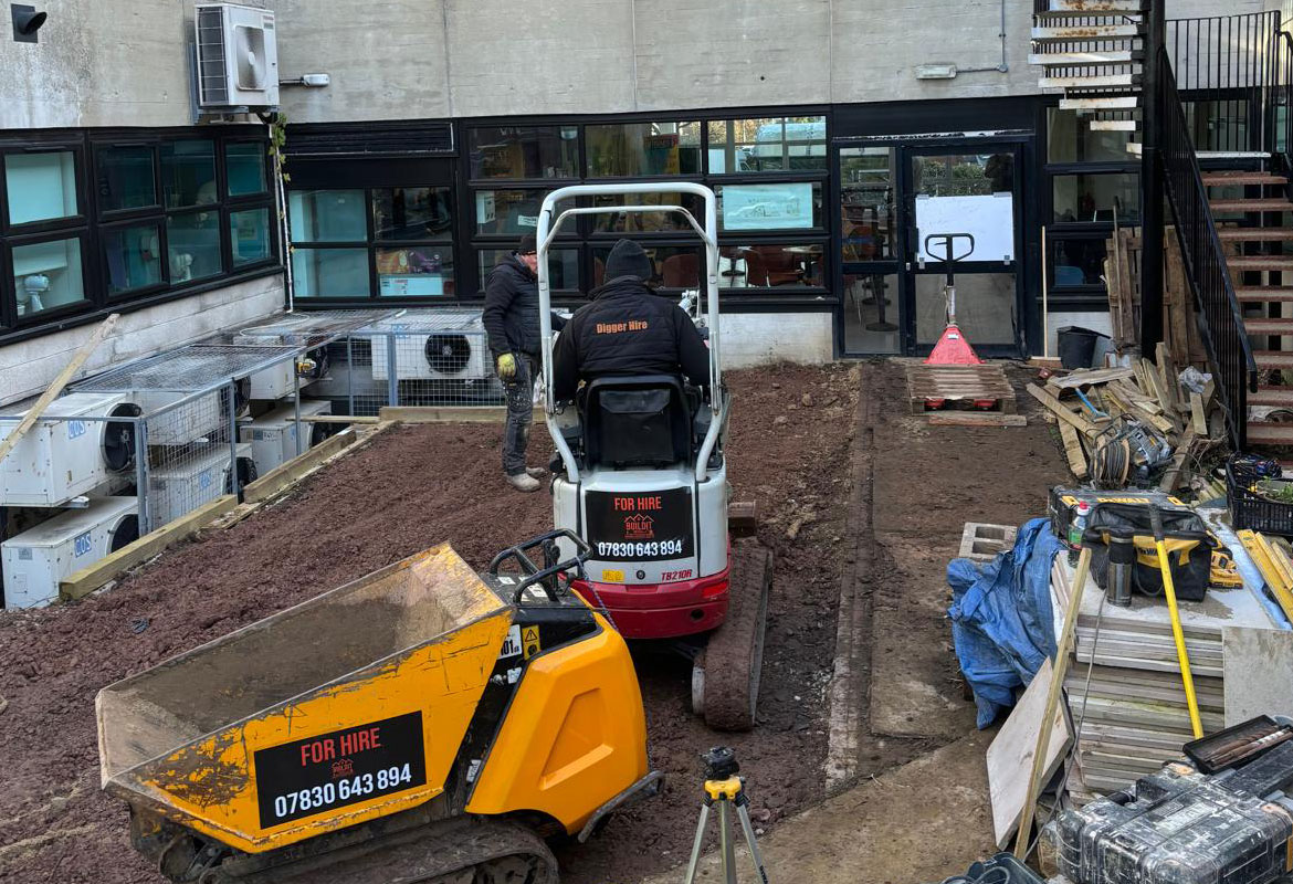 Access routes were carefully managed to safely move diggers, dumpers, and building equipment through the hospital to the garden area. Strict health and safety controls were put in place, including clear segregation, signage, and supervision at all times. This approach allowed the project to be completed efficiently, safely, and with minimal impact on hospital operations.